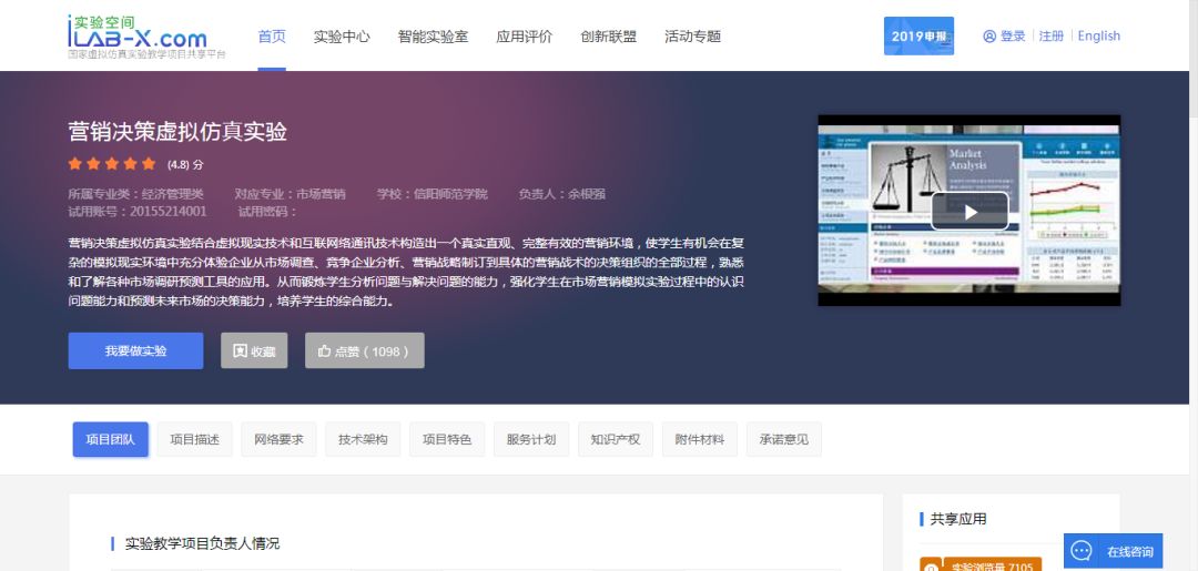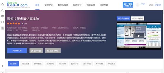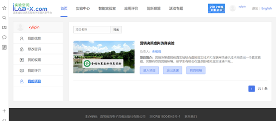 8、实验空间登录成功后,进入首页点击导航栏目中的【实验中心】栏目进入分类选择【专业大类】选择【经济管理类】,【专业分类】选择【市场营销】如下图显示: