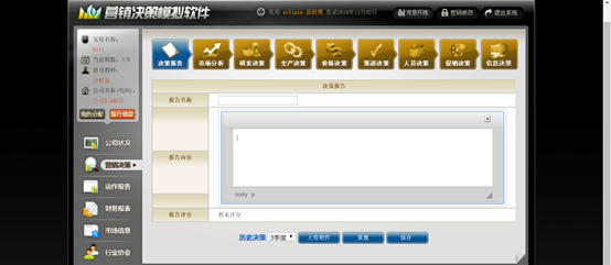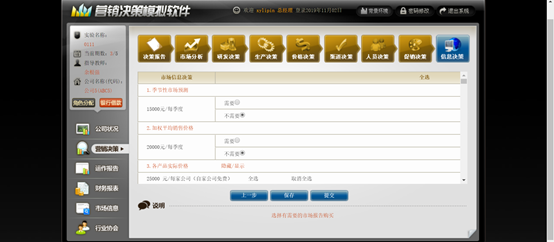 15、在了解小组公司的相关信息的基础上,进行相应的营销决策,每一步的决策做后需要点击【保存】。