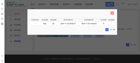 17、完成全部实验后,回到http://www.ilab-x.com-- “我的项目”,查看“我的成绩”。